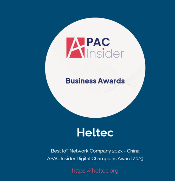 The Best IoT Network Company for 2023 in China Heltec has been named the Best IoT Network Company for 2023 in China by the APAC